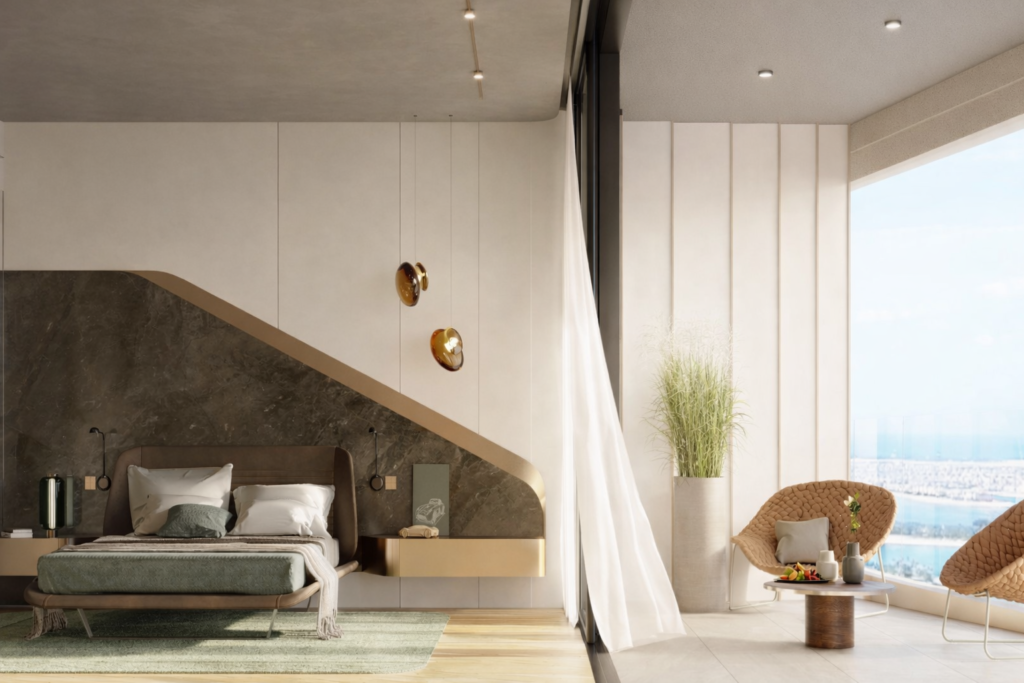 The property offers luxury apartments with panoramic sea views, including vistas of Palm Jumeirah and Burj Al Arab. Residents enjoy world-class sky amenities such as infinity pools, lounges, and wellness spaces designed for elevated living. Every detail reflects sophistication, comfort, and a future-forward lifestyle in one of Dubai’s most strategic locations.