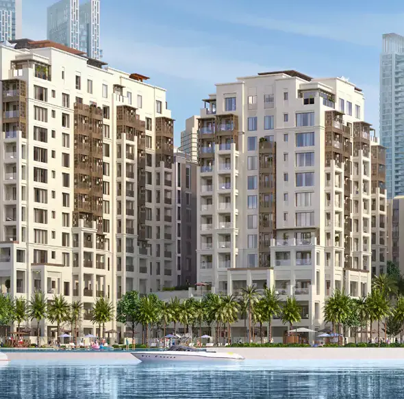 Rosewater features stylish residences and penthouses with floor-to-ceiling windows, balconies, and expansive views in a lively plaza setting. At Dubai Creek Harbour , Dubai’s first urban beach, offering a vibrant, family-friendly waterfront lifestyle along the historic Dubai Creek, where 700 meters of pristine white sand, infinity pools, and breathtaking sunset views, it delivers a true resort-style escape.