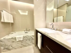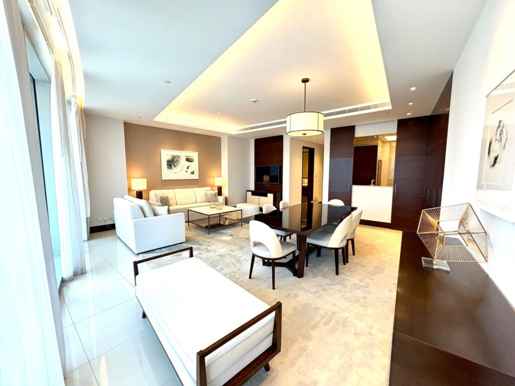 The twin towers complete Downtown Dubai’s skyline, rising over 50 storeys from a shared curving podium and reconnecting more than 220 metres above ground through a dramatic multi-storey sky bridge. Inspired by wind-shaped desert dunes, the Sky View Hotel features a glass-walled infinity pool, open-air terrace and restaurant, a cantilevered glass observation deck, and a thrilling glass slide offering panoramic views of the city, ocean, and sky.