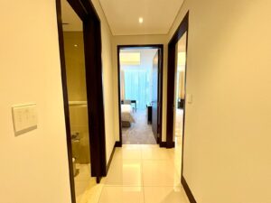 The interior showcases contemporary luxury with a calm, refined aesthetic, blending soft neutral tones, warm wood finishes, and elegant lighting throughout. Thoughtfully designed living and sleeping spaces offer comfort and sophistication, while the marble-finished bathroom adds a spa-like touch, creating a cohesive, hotel-style home experience;..