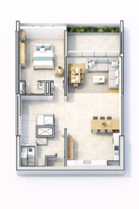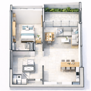 The living room reflects a refined contemporary style with a calm, inviting ambiance.Soft neutral tones are complemented by warm wood accents and textured finishes.Plush seating and sculptural furniture create a comfortable yet elegant layout. Glass partitions allow natural light to flow while maintaining openness.Statement lighting adds character and a soft ambient glow. Indoor plants bring freshness and a connection to nature.